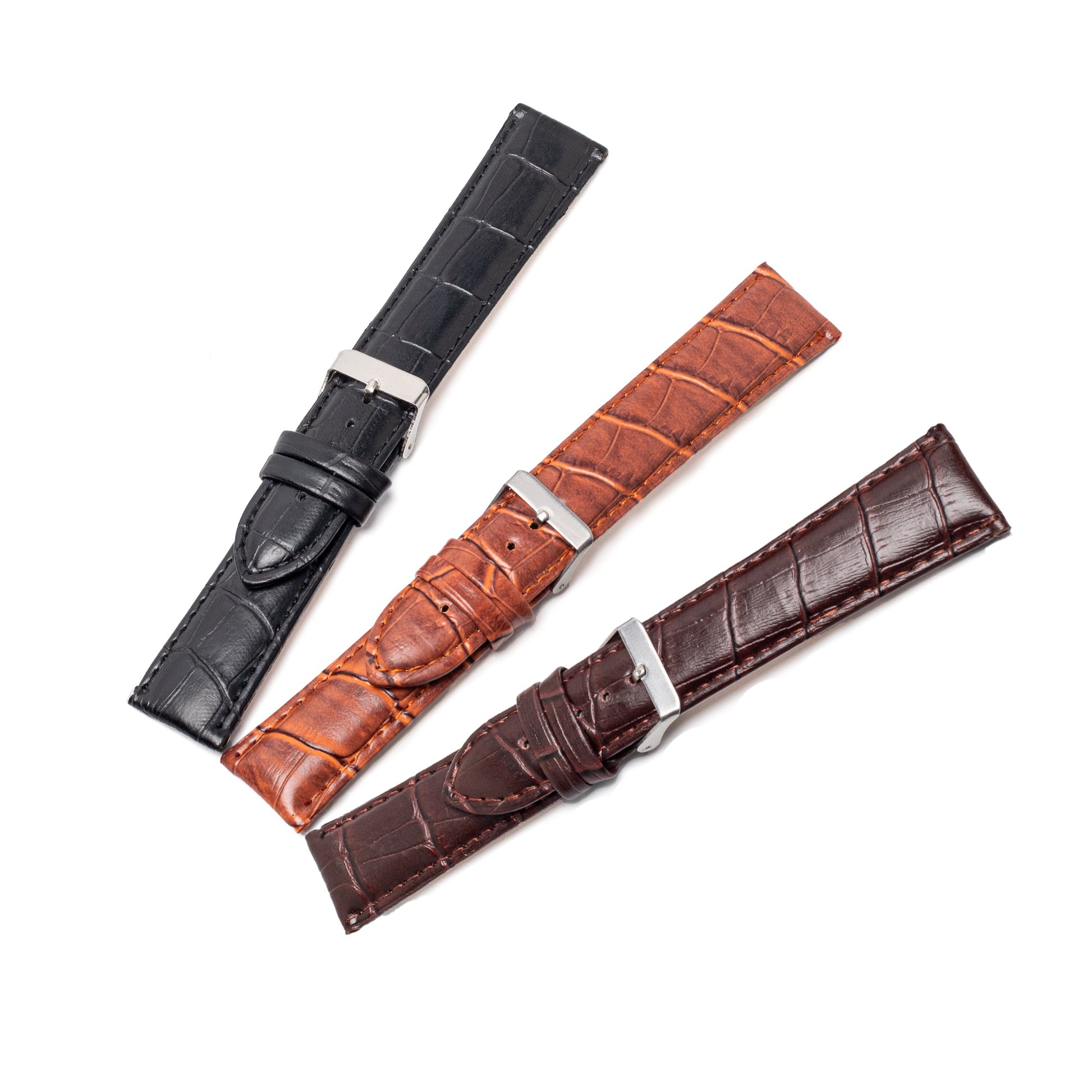Engineered for daily wear, the strap features reinforced stitching, a smooth or matte finish, and a polished crocodile texture that delivers both comfort and style. The precision-folded edges not only enhance strength but also provide a sleek, polished look that resists fraying and cracking over time.